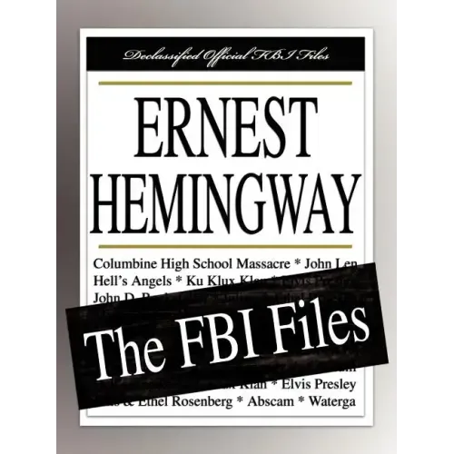 Ernest Hemingway: The FBI Files contains the actual original and declassified criminal investigation files related to popular American author Ernest Hemingway. Born on July 21, 1898, in Oak Park, Illinois, he became an author after World War I, where he was an ambulance driver for the Italian Army. In 1937 and 1938, he covered the Spanish Civil War for the American Newspaper Alliance. Ernest Hemingway moved to Cuba in approximately 1940, and lived at San Francisco de Paula, about 14 miles east of Havana. Mrs. Ernest Hemingway, the former Martha Gelhorn, was invited to come to Washington, D.C. to visit the week of October 12, 1942, as a personal guest of Mrs. Franklin Roosevelt. In January 1961, Hemingway became ill and was a patient at the Mayo Clinic in Rochester, Minnesota. Mr. Hemingway committed suicide in 1961. This publication is being published and made available now for the first time in a paperback book edition for those interested in the history surrounding author Ernest Hemingway.