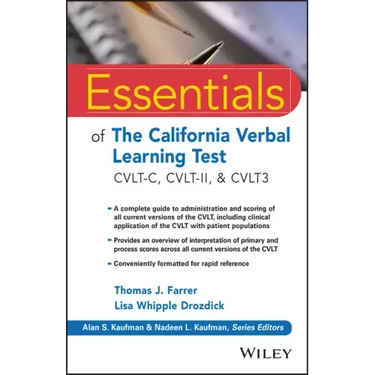 An easy-to-use reference for learning the essentials of administration, scoring, and interpreting the CVLT3, CVLT-II, or the CVLT-C