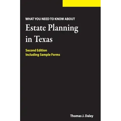 In this expanded second edition of "What You Need to Know About Estate Planning in Texas," family law attorney Thomas Daley explains the building blocks of a comprehensive estate plan in plain English. Even if you don't know the difference between a Springing Power of Attorney and a bottle of spring water, "What You Need to Know About Estate Planning in Texas" will explain all the important concepts you need to understand. Written in the crisp style of a litigation attorney, this expanded second edition of Thomas Daley's popular title contains descriptions of Miller Trusts, used to divert income so that a nursing home patient can qualify for Medicaid and Lady Bird Deeds that allow a Medicaid recipient to pass their homestead to family members without being subject to Medicaid Estate Reimbursement Program ("MERP") claims. The appendices contain numerous sample forms and a questionnaire that you can complete before meeting with an estate planning attorney. Your estate plan speaks for you when you can no longer speak for yourself. This book is a practical, no-nonsense first step in creating your own comprehensive estate plan.