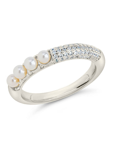Dainty shell pearls and dazzling CZ stones make this band truly glamorous! Add some shine to your look with this ring that you'll love showing off. Available in gold and silver tones.