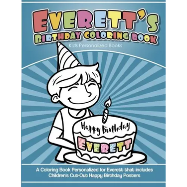 A Coloring Book Personalized for Everett that includes Children's Cut Out Happy Birthday Posters