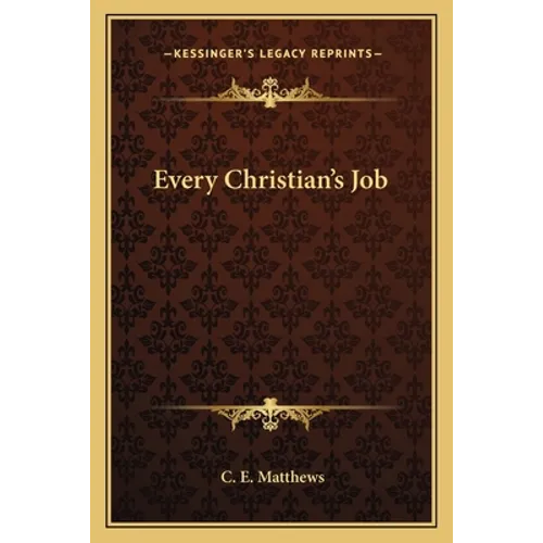 Every Christian's Job is a book written by C. E. Matthews that aims to inspire and motivate Christians to take an active role in spreading the gospel and serving their communities. The author emphasizes that evangelism and service are not just the job of pastors and missionaries, but rather the responsibility of every believer. The book is divided into several chapters, each focusing on a different aspect of Christian service. Matthews discusses the importance of prayer, the need for personal evangelism, and the role of the church in reaching out to the community. He also addresses common obstacles that may hinder Christians from fulfilling their calling, such as fear, complacency, and lack of knowledge.Throughout the book, Matthews draws on biblical examples and personal anecdotes to illustrate his points and offer practical advice. He encourages readers to step out of their comfort zones and embrace their unique gifts and talents in service to God and others.Overall, Every Christian's Job is a thought-provoking and inspiring read for anyone looking to deepen their faith and make a meaningful impact in the world around them.This scarce antiquarian book is a facsimile reprint of the old original and may contain some imperfections such as library marks and notations. Because we believe this work is culturally important, we have made it available as part of our commitment for protecting, preserving, and promoting the world's literature in affordable, high quality, modern editions, that are true to their original work.