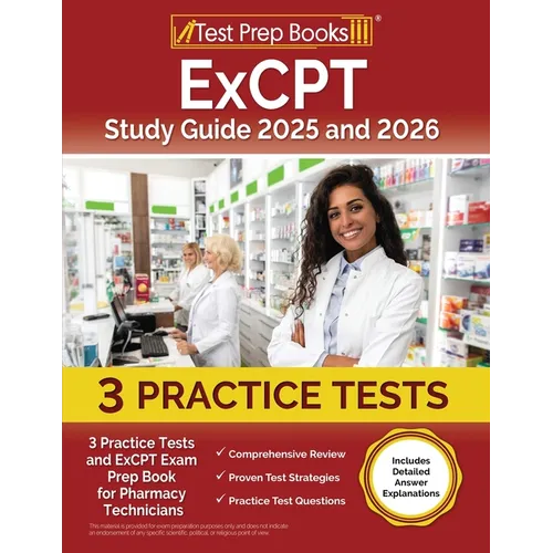 ExCPT Study Guide 2025 and 2026: 3 Practice Tests and ExCPT Exam Prep Book for Pharmacy Technicians [Includes Detailed Answer Explanations] - Paperback