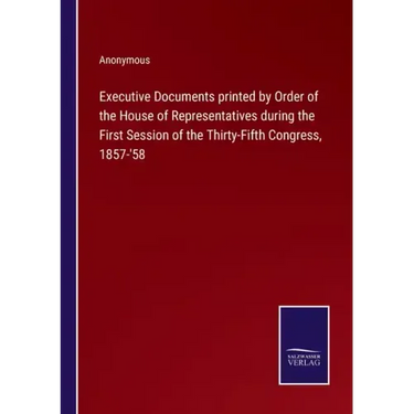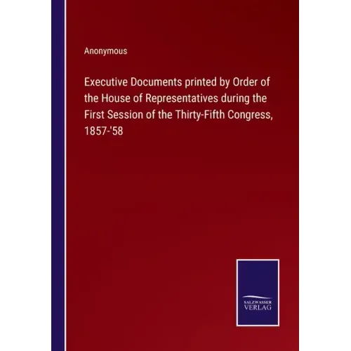 Executive Documents printed by Order of the House of Representatives during the First Session of the Thirty-Fifth Congress, 1857-'58 - Paperback