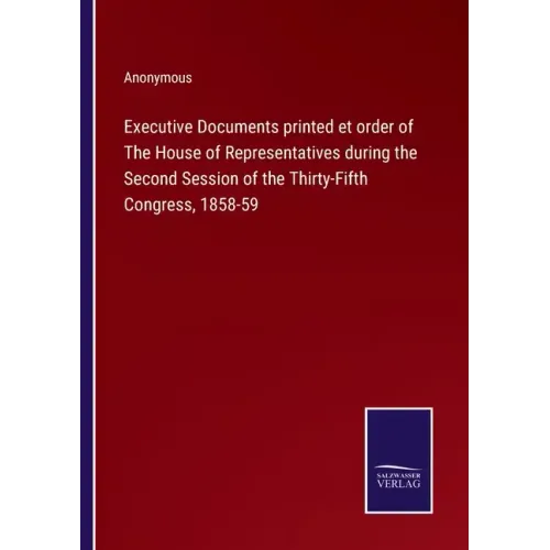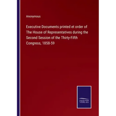 Executive Documents printed et order of The House of Representatives during the Second Session of the Thirty-Fifth Congress, 1858-59 - Paperback