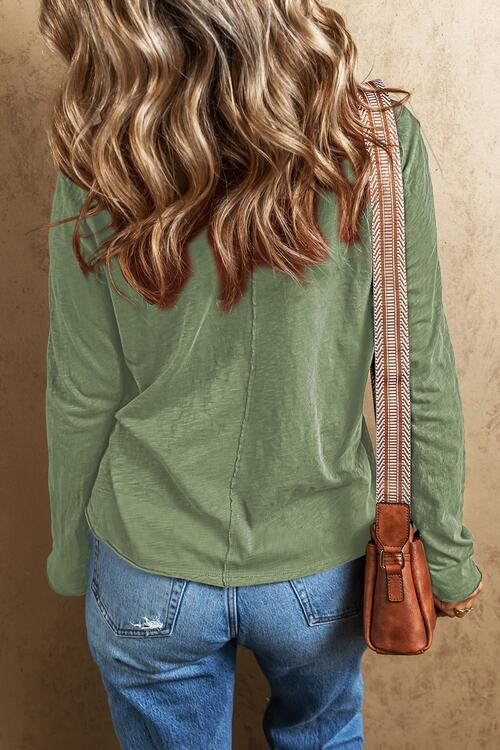 Exposed Seam V-Neck Long Sleeve T-Shirt