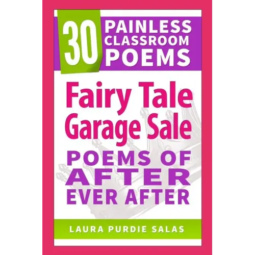 In Fairy Tale Garage Sale, award-winning poet Laura Purdie Salas (author of BookSpeak , Water Can Be..., and more) shares 30 poems from the citizens of Fairy Tale Land, who are having a neighborhood garage sale. Finally, they can get rid of clutter from their earlier adventures These 30 poems focus on seven fairy tales: Cinderella; Goldilocks and the Three Bears; Snow White and the Seven Dwarves; Rapunzel; Jack and the Beanstalk; The Emperor's New Clothes; and Thumbelina. For each fairy tale, an introductory poem summarizes the key events of the tale for those students not familiar with it. Then three poems from three characters' points-of-view offer up items for sale. What does the Evil Queen need with a mirror that tells the truth, after all? And why doesn't Rapunzel need barrettes anymore? These humorous poems offer behind-the-scenes looks and sometimes different opinions about why things happened as they did. Great for comparing versions of the same event when paired with prose or multimedia versions of the fairy tales. Mostly rhyming poems, but some other forms, too (cinquain, diamante, acrostic...) Extension activities by Colby Sharp share ideas for springboarding from these poems into deeper learning across many content areas.