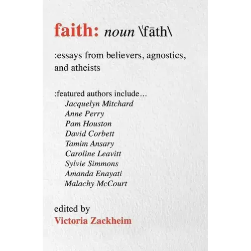 Whether believer, skeptic, agnostic, atheist, or something other, these twenty-four authors share a fascinating, daring, and multifaceted perspective on what faith means (or doesn't mean). The collection of personal essays includes bestselling authors such as Anne Perry, who writes about a deeply spiritual faith that embraces and sustains her through every step of her life. Caroline Leavitt writes about tarot cards, mediums, and quantum physics to explain her concept of faith. Afghan-American author Tamim Ansary beautifully captures his childhood curiosity amidst his Islamic views. There is the irrepressible Malachy McCourt's anti-religion rant, and then Pam Houston's signature wit and sense of irony, which gives the question of faith a surprising twist. Honest, provocative, and candid, Faith begins a larger conversation and invites the question: What do you believe?