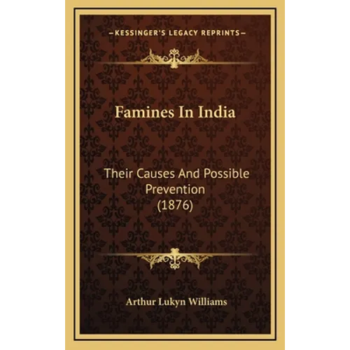 Famines in India: Their Causes and Possible Prevention is a book written by Arthur Lukyn Williams in 1876. The book provides a detailed analysis of the causes of famines in India during the 19th century, including both natural and man-made factors. Williams argues that the primary cause of famine in India is not a lack of food, but rather a lack of access to food due to poverty and economic inequality. He also discusses the role of British colonial policies in exacerbating the problem of famine in India.The book proposes several solutions to prevent famines in India, including improving agricultural practices, building irrigation systems, and establishing a system of relief for those affected by famine. Williams also advocates for the establishment of a national famine commission to monitor and prevent future famines.Overall, Famines in India: Their Causes and Possible Prevention is a comprehensive and insightful analysis of the causes and solutions to the problem of famine in India during the 19th century. It is a valuable resource for historians, policymakers, and anyone interested in understanding the complex issues surrounding famine and food security in India.This scarce antiquarian book is a facsimile reprint of the old original and may contain some imperfections such as library marks and notations. Because we believe this work is culturally important, we have made it available as part of our commitment for protecting, preserving, and promoting the world's literature in affordable, high quality, modern editions, that are true to their original work.