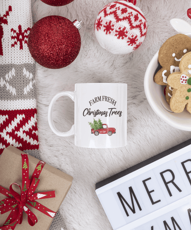 Farm Fresh Christmas Trees Truck Christmas Ceramic Mug by WinsterCreations™ Official Store