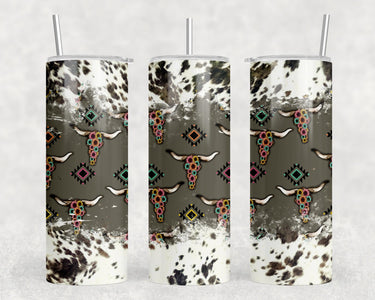 faux cowhide Bull Skulls|Skinny Tumbler|Optional Bluetooth Speaker| Speaker Color Varies by Rowdy Ridge Co