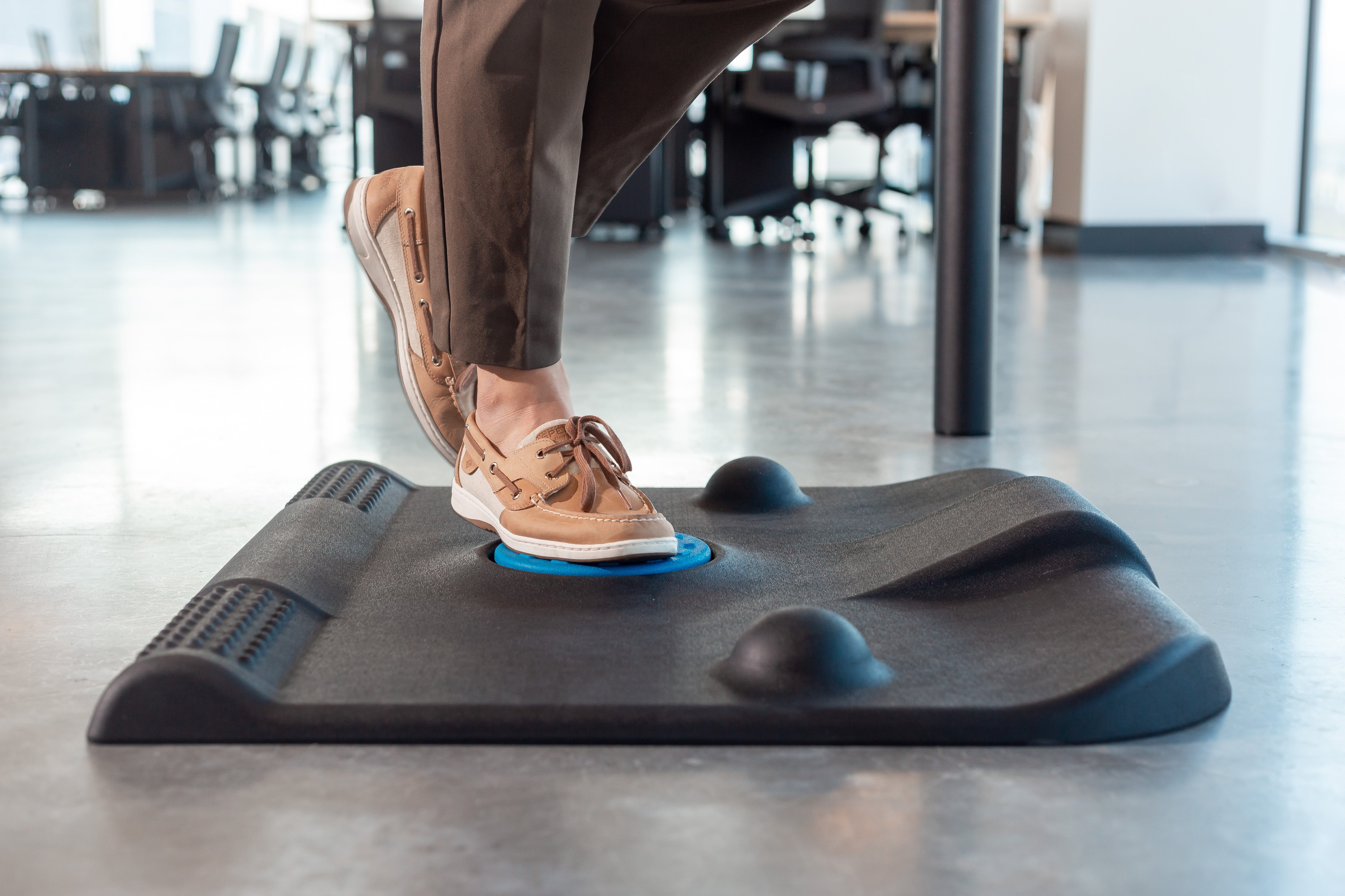 The Stand & Spin Mat™ revolutionizes stretching exercises and movement while standing. Premium anti-fatigue standing mat made of quality and durable materials with a revolutionary design: