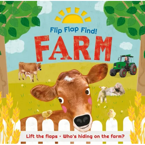Toddlers will love exploring the farm through the day and in different seasons, and learning about the adult and baby animals in this beautifully illustrated, read-aloud board book. The intriguing cover has a cutaway sun to feel, and inside, there are adorable farm animals under large flaps with peek-through holes, plus lots more exciting things to spot around the farm, from a chicken coop and a big-wheeled tractor to a scarecrow and cute bunny rabbits. The playful, rhyming text encourages little ones to guess who's hiding. And when they lift the big flaps, they find cows in the milking shed, goats and kids playing in their pen, pigs and piglets ready for lunch, geese and goslings at the pond, fluffy llamas in the field, and more! Flip Flap Find! Farm is a captivating picture book to share. A perfect gift for little animal lovers, it will spark a toddler's curiosity, stimulate their imagination, language, and literacy, and build their knowledge of the natural world.