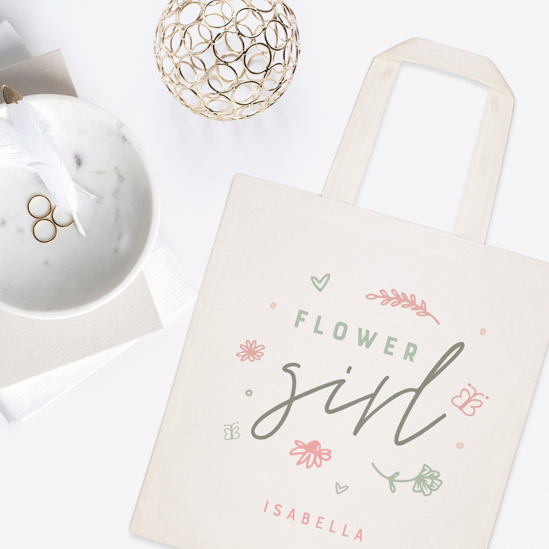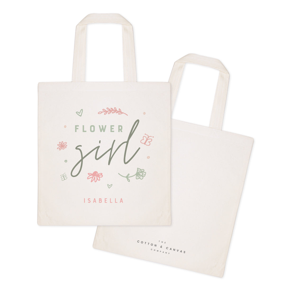 Floral Personalized Name Flower Girl Wedding Cotton Canvas Tote Bag by The Cotton & Canvas Co.