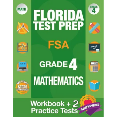 In Florida, students are required to take the grade 4 FSA mathematics test. The assessment determines if students have mastered skills for math in grade 4, and ensures that a student is getting ready for fifth grade. This FSA test prep math workbook will give students plenty of practice in the format & content of grade 4 math problems on the test so they can excel on exam day (including 4th grade arithmetic, geometry, algebra, and measurement workbook exercises and practice test questions).