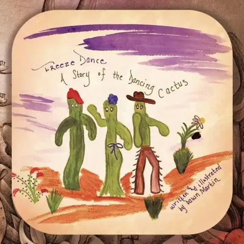 When the sun goes down, the Saguaro cacti secretly begin to dance. Hip-Hop Harry, Boppin' Betty, and Tappin' Tooty come to life as they dance in the middle of the night. When the sun comes up, they have to freeze so people won't see them. And sometimes, when they stop dancing, their arms end up in the wrong place. Written and illustrated by Dawn Martin using watercolor, the characters were derived from real people close to the family. The song in the book was derived from her grandmother's cheerleading song (1906 Lone Star School, Kansas). Stay tuned for The Policeman and The Pie, which combines true stories from the author's father and father-in-law.