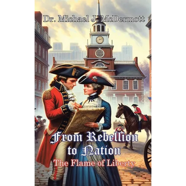 In the shadowed corridors of history, where the fight for liberty whispers secrets of the past, "From Rebellion to Nation: The Flame of Liberty" emerges as a thrilling saga set against the fervent backdrop of the American Revolutionary War. This novel takes you on an unforgettable journey through a world where loyalty is tested, and courage is born. At the heart of this epic narrative are Margaret Hale and James Bradford, two indomitable spirits whose fates become intertwined with the destiny of a burgeoning nation. Margaret, a cunning spy within the Culper Ring, navigates the dangerous waters of espionage against the British, wielding her intelligence as her greatest weapon. James, a British soldier turned Patriot, finds his convictions challenged on the battlefield, leading him down a path of redemption and rebellion. As the war rages on, Margaret and James discover that the fight for independence is as much about the battles within as the skirmishes on the field. From the cobblestone streets of Philadelphia to the verdant fields of battle, they encounter allies and enemies, love and loss, and the myriad human emotions that weave through the fabric of a country striving to define itself. "From Rebellion to Nation: The Flame of Liberty" is not just a story of war but a testament to the resilience of the human spirit, the power of love, and the unyielding pursuit of freedom. Amidst the chaos of conflict and the quiet moments of introspection, a tale of passion, espionage, and revolution unfolds, revealing the unsung heroes whose sacrifices became the cornerstone of a new world. Prepare to be transported to a time where the flame of liberty burns bright, igniting the sparks of revolution and illuminating the path from rebellion to nation."
