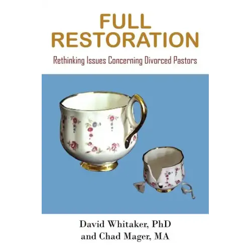 Full Restoration is not just another book about divorce. It is unique in that it appeals to the church to see men differently who have sinned by divorce in their past. It is a book to set men free who are hurting, post-confession and repentance, to see that they can be used in ministry again. Full Restoration challenges the traditional interpretation of 1 Timothy 3:2 suggesting that a man who has sinned by divorce in his past is not qualified for ministry. While this goes against the voice and reason of all of Scripture, it also violates the intention and grammar of 1 Timothy 3:2. The pastoral aspirant is to be one who is a "one woman kind of man". It emphasizes this man's present character, not his past sin. There is not a place in the Bible that says men who have sinned in their past lose their giftedness and even with confession and repentance cannot be effective in ministry again. God's forgiveness and restoration is complete. Even Jesus told Peter after his denial with cursing, "Feed my sheep" May this book help counselors, pastors and church leaders to help men, truly called of God, back to effective places of ministry. May the church see its need to discontinue seeing these precious forgiven and gifted saints as second class citizens...but restored persons who will feed Jesus' sheep