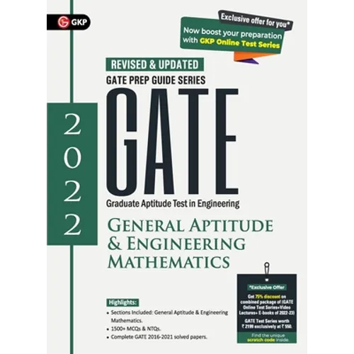 Lakhs of students write the GATE exam annually. The level of competition is fierce, owing to the increasing competition for a limited number of seats. With the right books for preparation, achieving the goal of getting a good rank in GATE becomes a reality. While preparing for GATE, students should make a habit to practice and revise the concepts with both concept clarity and lots of questions for practice. This is where GKP's Prep Series: GATE 2022: General Aptitude & Engineering Mathematics, which is prepared by renowned faculties who are subject matter experts, is your best bet to be GATE READY! The entire book has been revised and updated as per the latest exam syllabus. It is divided into units, chapters and further segmented into topics. The questions given with the unit have detailed answers, supported by in-depth explanations and diagrams. The book includes well-explained sections on General Aptitude and Engineering Mathematics. It also includes more than 1500 MCQs & NTQs, last six years GATE Solved papers of 2016 and 2021.Features: Comprehensive theory with concepts. Ample questions supplemented with solutions and diagrams. Thoroughly revised and updated as per new syllabus