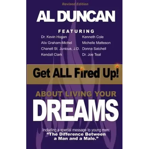 Do you know someone who should be living his or her dream? Do you know someone who has given up on his or her dreams?Then give him or her a copy of Get ALL Fired Up About Living Your Dreams" because as you read this powerful book you will discover inspiring stories, practical advice, and proven tips for achieving your dreams.As you enjoy Get ALL Fired Up About Living Your Dreams you will learn how to: - Live the life of you really want to live- Overcome self-doubt- Know when passion is NOT enough- Deal with past regret- Set and achieve your goals- Overcome your self-defeating excuses- Be encouraged and empowered; motivated and inspired.Get ALL Fired Up About Living Your Dreams also includes insightful interviews, conducted by Al Duncan, with people from various walks of life. (A Desert Storm Veteran who is now an attorney, writer, and spoken word artist; a fashion designer and seamstress who now a nationally recognized TV Personality; a former administrative assistant turned author and professional speaker...and other successful people living their dreams.)The one thing everyone in this book has in common is: They are fired up and ready to go because they are living the life they have dreamed about. They wake up everyday and get PAID to do what they love to do... And you can, too BONUSA Special Message to Young Men: "The Difference Between a Man and a Male"