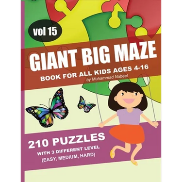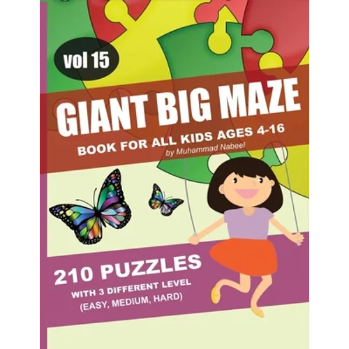 Giant Big Maze Book for All Kids Ages 4-16 - 210 Puzzles with 3 Different Level (Easy, Medium, Hard) - Vol 15: Maze Puzzles Activity Workbook for All - Paperback