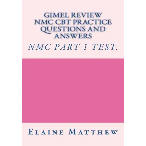 It contains over 300 practice questions and answers which comprises of different sections of NMC Study guide topics. These are: Assessment and Discharge planning; Communication; Infection Prevention and Control; Laboratory Diagnostics and Test; Leadership in Nursing; Medicines Management; Moving and Positioning; Nutrition, Fluid balance and Blood Transfusion; Observation; Patient Comfort and End of Life Care; Patient Safety; Pre-operative Care; Psychosocial Care; Respiratory Care; Vulnerable Adult and Children; Wound Management.It will help you gain strong confidence and fully be prepared for this test. Also get a copy of "Gimel Review for the NMC CBT test", or the updated edition of the same title. "Gimel Review for the NMC CBT test, Updated Edition", by the same author.Go through the review contents and then practice more questions in this book that covers over NMC CBT 300 practice questions and answers.