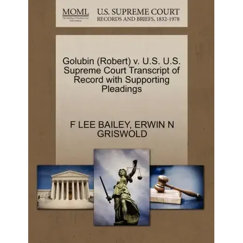 The Making of Modern Law: U.S. Supreme Court Records and Briefs, 1832-1978 contains the world's most comprehensive collection of records and briefs brought before the nation's highest court by leading legal practitioners - many who later became judges and associates of the court. It includes transcripts, applications for review, motions, petitions, supplements and other official papers of the most-studied and talked-about cases, including many that resulted in landmark decisions. This collection serves the needs of students and researchers in American legal history, politics, society and government, as well as practicing attorneys. This book contains copies of all known US Supreme Court filings related to this case including any transcripts of record, briefs, petitions, motions, jurisdictional statements, and memorandum filed. This book does not contain the Court's opinion. The below data was compiled from various identification fields in the bibliographic record of this title. This data is provided as an additional tool in helping ensure edition identification: Golubin (Robert) v. U.S.Petition / F LEE BAILEY / 1968 / 162 / 393 U.S. 831 / 89 S.Ct. 100 / 21 L.Ed.2d 102 / 6-6-1968Golubin (Robert) v. U.S.Memorandum (P) / ERWIN N GRISWOLD / 1968 / 162 / 393 U.S. 831 / 89 S.Ct. 100 / 21 L.Ed.2d 102 / 7-5-1968