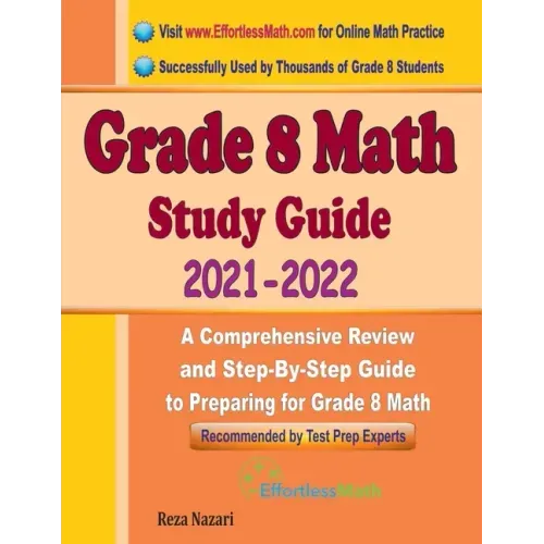 Grade 8 Math Study Guide, which reflects the 2021 - 2022 curriculum guidelines, is designed by top Math instructors and test prep experts to help students succeed on the Grade 8 Math. The updated version of this comprehensive Grade 8 Math preparation book includes Math lessons, extensive exercises, sample Grade 8 Math questions, and quizzes with answers and detailed solutions to help you hone your math skills, overcome your exam anxiety, boost your confidence-and do your best to ace the Math exam on test day. Upon completion of this perfect Grade 8 Math prep book, you will have a solid foundation and sufficient practice to ace the Grade 8 Math test.