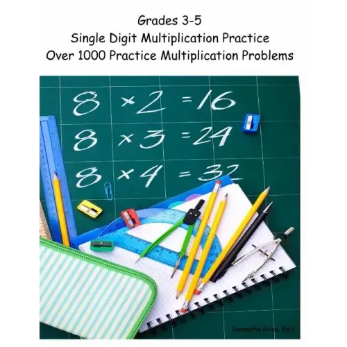Grades 3-5 Multiplication Practice Workbook is a multiplication workbook providing children in Grades 3-5 with practice on multiplication facts 0-10. This multiplication workbook includes over 1000 single digit multiplication practice problems to foster a better understanding of multiplication facts. This multiplication practice workbook is designed for young learners who have been previously introduced to the concept of multiplication facts. Lessons are presented using pictures to make the learning process fun and engaging. Children are able to practice their multiplication facts in several different ways using Grades 3-5 Multiplication Practice Workbook. This multiplication workbook also includes numerous Multiplication Drills incorporating multiplication facts 0-10 for review and extended practice. A Multiplication Table and Multiplication Fact Chart are included for additional study.