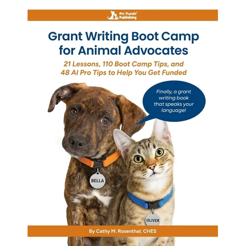 Written by Cathy M. Rosenthal, a nationally recognized expert with more than 35 years in the animal welfare field, Grant Writing Boot Camp for Animal Advocates is the go-to guide for anyone looking to raise more money for animals. Drawing on decades of experience in grant writing, communications, and fundraising, Cathy turns the often-overwhelming grant-writing process into something that finally makes sense - one lesson, one story, one tip at a time - with examples and language tailored specifically for the animal welfare field.