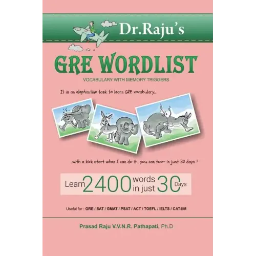 Like a target, Dr. Raju's GRE word list gets ingrained in your mind This proven methodology is based on more than a decade's practical research on vocabulary acquisition, retention, and usage. Many students have no idea of the advanced university level vocabulary that appears on the GRE tests. If you are one of them, you found the right book. GRE Wordlist: Vocabulary with Memory Triggers will teach you the words you just need to know, sharply and efficiently. Absorb the words-not just acquaint with them, which is what most vocabulary books do. Try memory triggers-guaranteed to fix each word and its meaning permanently in your mind-and be a GRE word wizard How to use this book-each word consists of four elements: 1. The Word: The word you wish to learn, followed by phonetic pronunciation and definition. Example: aesthetic (es THET ik)-concerned with beauty; artistic 2. The Memory Trigger: The memory trigger is a simple word that rhymes or may signify the main word. Example: Athletic 3. Trigger Sentence: The link connects the main word and the memory trick in a sentence. Example: athletic body appears aesthetic 4. Sample Sentence: Kumar carved an aesthetically pleasing wood sculpture.