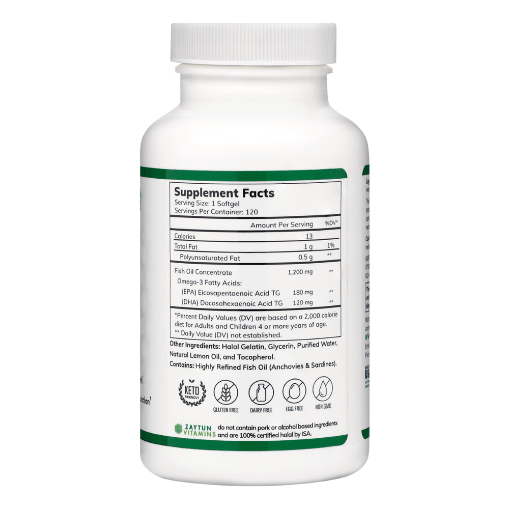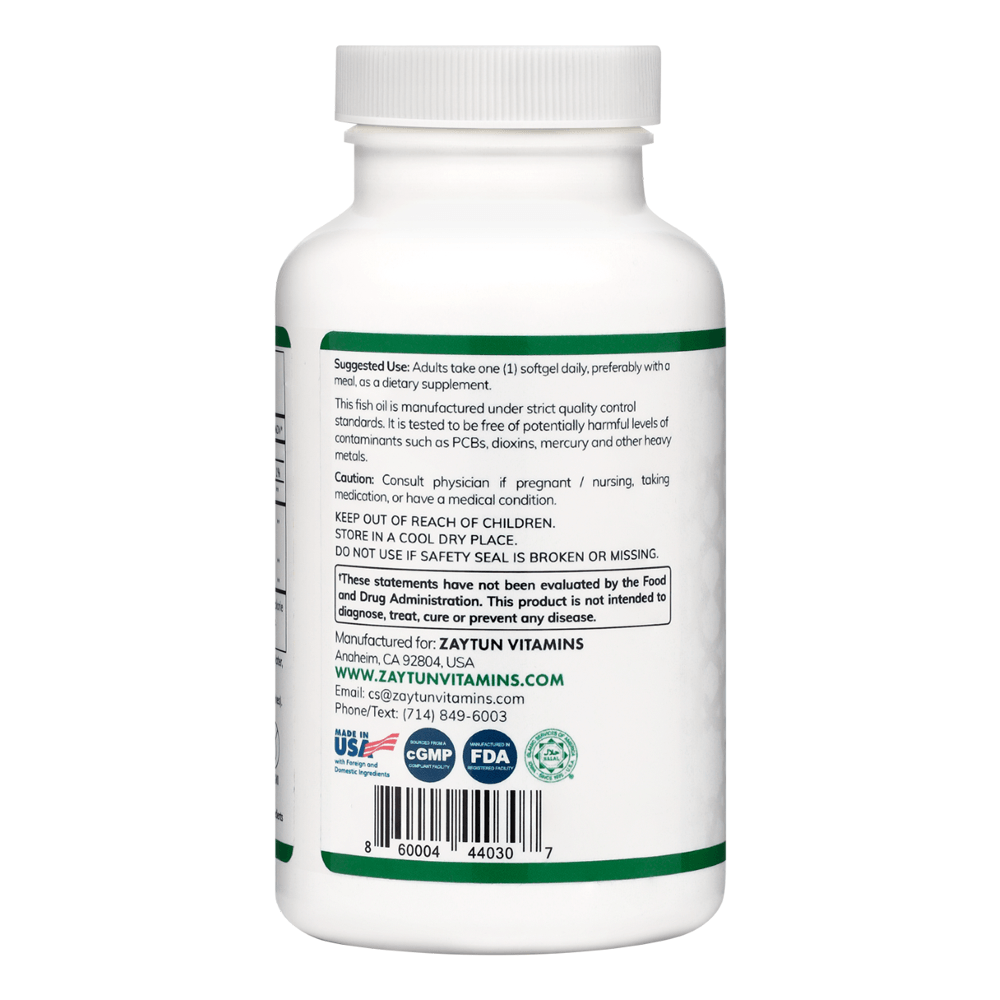 Halal Fish Oil Omega-3 (Halal Gelatin) Softgels (3Pack) by Zaytun Vitamins