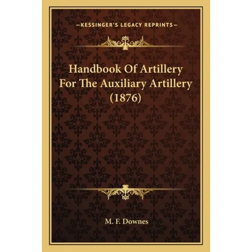 The Handbook of Artillery for the Auxiliary Artillery is a book written by M. F. Downes in the year 1876. This book is a comprehensive guide to the use of artillery in warfare, targeted towards the auxiliary artillery. It contains detailed information on the different types of artillery, their functions, and how they are operated. The book also includes information on the construction and maintenance of artillery, as well as the tactics and strategies used in artillery warfare. The author provides valuable insights into the role of auxiliary artillery in military operations and how they can be effectively deployed to achieve victory. The Handbook of Artillery for the Auxiliary Artillery is a valuable resource for military officers, historians, and anyone interested in the history of warfare.This scarce antiquarian book is a facsimile reprint of the old original and may contain some imperfections such as library marks and notations. Because we believe this work is culturally important, we have made it available as part of our commitment for protecting, preserving, and promoting the world's literature in affordable, high quality, modern editions, that are true to their original work.