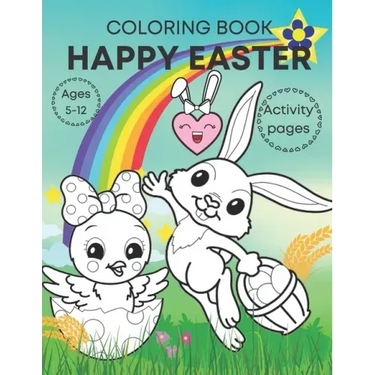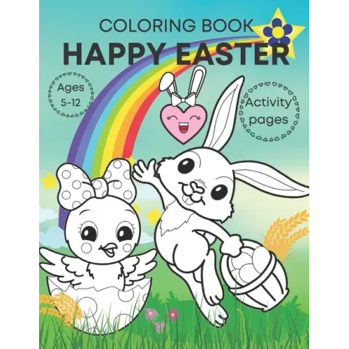 Happy Easter coloring book activity pages ages 5-12: Adorable, fun book for kids- bunnies, eggs, chicks and activities! - Paperback
