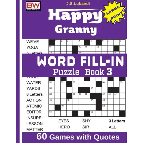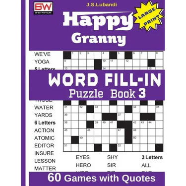 Welcome to the new Happy Granny WORD FILL-IN Puzzle Book 1, a collection of 60 fantastic puzzles developed to help people boost their memory, reasoning, creative thinking and problem solving. They also relax the mind and relieve stress.Solving the puzzles in this book can provide vigorous mental workouts for everyone from youngsters to senior citizens. All puzzles in this book have been designed in large print with high contrast, which makes them perfect for all ages, including the visually impaired. Answers are well arranged at the back of the book just in case you're stuck on the way! Puzzles are just pure fun!
