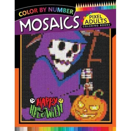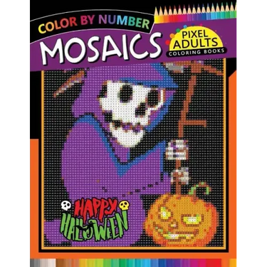 Happy Halloween Pixel Mosaics Coloring Books: Color by Number for Adults Stress Relieving Design Puzzle Quest - Paperback