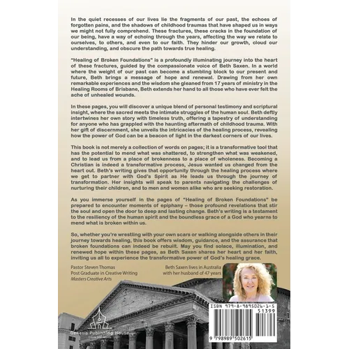 "Healing of Broken Foundations" is a profoundly illuminating journey into the heart of these fractures, guided by the compassionate voice of Beth Saxen. In a world where the weight of our past can become a stumbling block to our present and future, Beth brings a message of hope and renewal. Drawing from her own remarkable experiences and the wisdom she gleaned from 17 years of ministry in the Healing Rooms of Brisbane, Beth extends her hand to all those who have ever felt the ache of unhealed wounds.