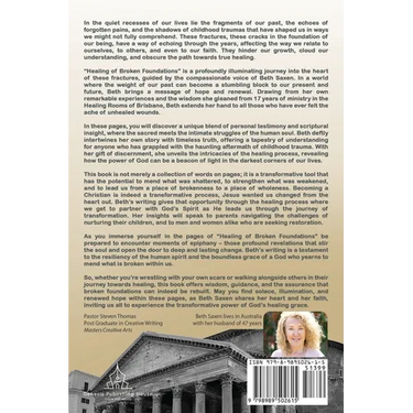 So, whether you're wrestling with your own scars or walking alongside others in their journey towards healing, this book offers wisdom, guidance, and the assurance that broken foundations can indeed be rebuilt. May you find solace, illumination, and renewed hope within these pages, as Beth Saxen shares her heart and her faith inviting us all to experience the transformative power of God's healing grace.