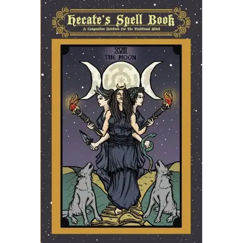 - Features a celestial illustration of the Hecate Triformis and her dogs in the Major Aracana tarot card "The Moon"