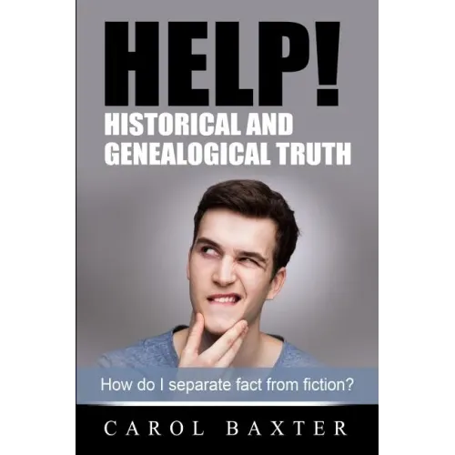We sit at our computer searching for information about our ancestors and ... click ... we find something new and intriguing. But wait: it contradicts something else we've found. Clearly, both pieces of information can't be true. So which is true and which isn't? Or are both untrue? HELP Most family historians are more adept at gathering information than determining if it is accurate. An error can prove disastrous, gobbling up our precious time and money as we search in the wrong place - or worse, as we pursue the wrong ancestral line. So how do we ensure that our conclusions are accurate? "Help Historical and Genealogical Truth: How do I separate fact from fiction?" is a 'must-read' for family history detectives wishing to accurately trace their ancestry. Written in Carol Baxter's easy-to-read style, it explains how to evaluate our ancestral information so as to determine which is reliable and which is like a virus that corrupts our efforts. After reading this book, you too will be able to separate fact from fiction, truth from mistruth. Your ancestors will thank you Abridged review from 'The Ancestral Searcher' (HAGSOC) written by Eleanor Vardanega: The purpose of this book is to assist family historians to develop skills in accurately interpreting the information they have collected about their ancestors. Many people spend considerable time and money gathering information, so it makes sense you would want to be confident that this information actually relates to the correct (usually your) family and the conclusions that are drawn are accurate and defensible. This book provides a rigorous and systematic approach to getting at the truth.As set out in the book, this process of getting at the truth is divided into 'principles' - the foundations of evidence analysis, and 'practices' - typical strategies which may be used to put the principles into practice aided by the use of conflict resolution skills. These strategies are illustrated through a series of case studies involving family identity, family lore and how misinformation can take on a life of its own ... The 'principles' chapters cover the key concepts, the nature of their systematic application and the reliability of various types of evidence, including family stories. The diagrams illustrate and emphasise the key points of several important concepts ... In terms of the 'practices', each chapter illustrates typical complications of evidence and an appropriate strategy to deal with it. For example, the author refers to Ockham's Razor (p.73) in the context of developing theories to explain inconsistencies, glitches and oddities in family history records. Basically, this means that among competing theories, first go for simplicity. By way of simple explanations of record oddities, people make mistakes because they are tired or distracted, or have protected a reputation, or put too much faith in someone else's recollections. Chapter 15 struck me as a particularly interesting coverage of people's unmovable belief in a certain historical result or outcome which is virtually impossible to shift regardless of the weight of evidence to the contrary ...The two page Summary Check at the end of the book is useful for historians at all levels of skills and experience. I found it a useful device to run over a recent article that I thought was just about finished. It really helped the tidy-up pre publication ...Overall, this book is easy to read, with short chapters broken up with diagrams and case studies. The case studies are detailed enough to illustrate the lesson and very interesting in themselves ... There are plenty of books and websites out there to assist people with the accumulation phase, roadblocks and brick walls. This book fills an important need around the quality control of your information, write-up and conclusions, by providing theoretical principles, practical exercises and lessons in understanding historical context and human motivation.