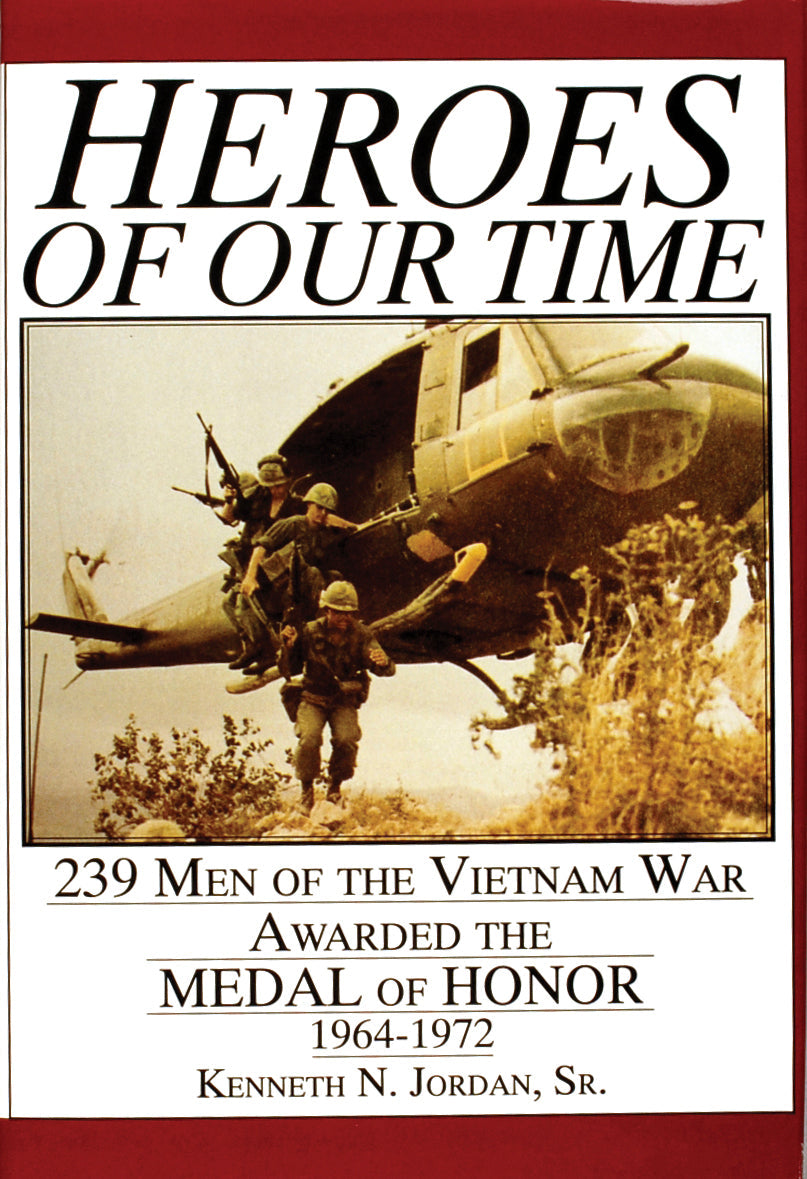 Heroes of Our Time contains all 239 Medal of Honor citations such as this excerpt: ...His rifle ammunition expended, he seized two grenades and, in an act of unsurpassed heroism, charged toward the entrenched enemy weapon. Hit again in the leg, this time with a tracer round which set fire to his clothing, Sgt. Robinson ripped the burning clothing from his body and staggered indomitably through the enemy fire, now solely concentrated on him, to within grenade range of the enemy position. Sustaining two additional chest wounds, he marshalled his fleeting physical strength and hurled the two grenades, thus destroying the enemy position, as he fell dead upon the battlefield... Along with the citations are newspaper accounts of various battles. Heroes of Our Time is a look at the courage of American soldiers in Vietnam.[AuthorName]By (author) Kenneth N. Jordan[/AuthorName][AuthorBio][/AuthorBio][NumIllustration]16 pages of photographs[/NumIllustration][CoAuthor][/CoAuthor][SubTitle]239 Men of the Vietnam War Awarded the Medal of Honor • 1964-1972[/SubTitle][ColorPattern]16 pages of photographs[/ColorPattern]Free shipping on all U.S. orders