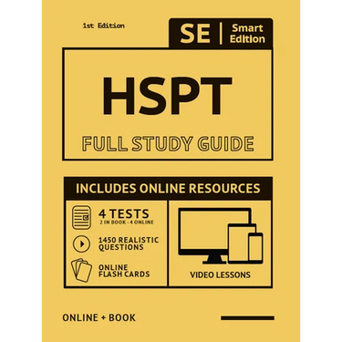 The Smart Edition HSPT study guide for the High School Placement Test offers complete subject review with online video lessons, 4 full practice tests both in the book + online containing 1,450 realistic practice questions PLUS online flashcards