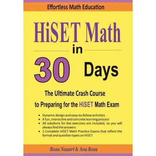 HiSET Math in 30 Days provides students with the confidence and math skills they need to succeed on the HiSET Math, providing a solid foundation of basic Math topics with abundant exercises for each topic. It is designed to address the needs of HiSET test takers who must have a working knowledge of basic Math.
