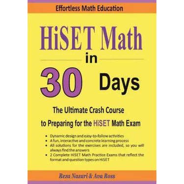 HiSET Math in 30 Days is the only book you'll ever need to master Basic Math topics It can be used as a self-study course - you do not need to work with a Math tutor. (It can also be used with a Math tutor).