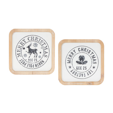 Add a touch of vintage holiday charm to your home with this set of Christmas Mail Stamp Plaques! Featuring elegant cursive script and a classic "Merry Christmas" message, these beautifully crafted plaques bring warmth and seasonal joy to any space. The neutral white and brown tones, paired with a natural wood frame, create a timeless rustic aesthetic. Made from durable MDF and fir wood, these lightweight plaques are perfect for enhancing your holiday decor year after year. Whether displayed on a wall, shelf, or mantel, these festive plaques will spread holiday cheer throughout your home! Sold in a set of twelve pieces with three assorted designs to make a statement in your home.