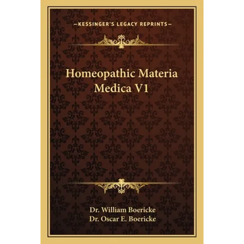 Homeopathic Materia Medica V1 is a comprehensive guide to homeopathic remedies written by Dr. William Boericke. The book contains detailed information on over 500 remedies, including their sources, preparation, and clinical applications. Each remedy is described in detail, including its symptoms, indications, and modalities. The book is organized alphabetically and includes a detailed index for easy reference. This volume is an essential reference for homeopaths, students of homeopathy, and anyone interested in natural medicine. Dr. Boericke's expertise and vast knowledge of homeopathy make this book an invaluable resource for anyone seeking to understand and apply this powerful healing modality.1927. Other volumes in this set include ISBN number(s): 0766183882. Volume 1 of 2: The characteristic and guiding symptoms of all remedies, clinical and pathogenetic. This book contains the well known verified characteristic symptoms of all our medicines besides other less important symptoms aiding the selection of the curative remedy. All the new medicines and essentials of the published clinical experience of the school have been added. This is a succinct resume of the symptomatology of every medicine used in Homeopathy.This scarce antiquarian book is a facsimile reprint of the old original and may contain some imperfections such as library marks and notations. Because we believe this work is culturally important, we have made it available as part of our commitment for protecting, preserving, and promoting the world's literature in affordable, high quality, modern editions, that are true to their original work.