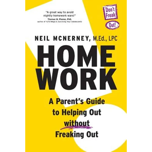 Neil McNerney, a licensed counselor and parenting expert, will show you ways to help your child do better in school without arguments, yelling, or guilt. In his 25 years working with school-age children and their parents, Neil McNerney has developed a simple and powerful approach that will increase achievement and decrease aggravation HOMEWORK: A Parent's Guide to Helping Out Without Freaking Out will guide you through a simple process to find a way to help your child based on which faulty coping pattern your child is using. Most homework books are focused on study techniques. Homework focuses on how parents can be powerful leaders in their kid's education. It answers the most common questions parents ask: When do I reward and when do I punish? How do I give advice about studying without getting backtalk? How much should I review homework? How do I help my stressed out child who takes school too seriously? What do I say when my child says "I don't care" about school? How do I help my disorganized child without feeling like I am his secretary? Praise for Homework "Whether you have an anxious, disorganized or defiant child when it comes to doing schoolwork, McNerney's C.A.L.M. method allows you to tailor your intervention to the specific style of your child. A great way to avoid nightly homework wars " - Thomas W. Phelan, PhD, author of Surviving Your Adolescents "Neil is a gifted communicator, able to introduce ideas in a way that make perfect sense out of complicated dynamics, and leaves parents feeling renewed and ready for action. Neil is a professional worth watching and learning from. I know I have." - Hal Runkel, NY Times bestselling author of ScreamFree Parenting "I've never read a book like this one I will keep it on my professional shelf & continue to recommend to parents and professionals. Thanks for the gem of a book, Neil McNerney No wonder its flying off shelves " - Laura Chernow, Book Reviewer for The Purcellville Gazette