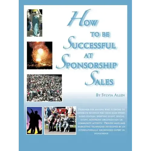 Where do you find money in today's money-tight world? If you are a producer of events, community activities, sports, parades, park and recreation activities ... Anything that attracts the general public for recreation ... You should read this book. HOW TO BE SUCCESSFUL AT SPONSORSHIP SALES gives you a roadmap that guarantees your success in finding money for your projects. How do you sell sponsorship? What do sponsors want? How do you determine what benefits are of greatest value to a sponsor? Where do you find sponsors? How do you talk to them? Are you a for profit or non profit organization?