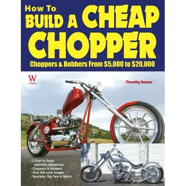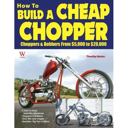 Custom bikes, choppers and bobbers in particular, don't have to cost thirty thousand dollars. A chopper or bobber built at home can be had for less than five thousand dollars. The key is the use of a donor bike for most of the components. How to Build a Cheap Chopper documents the construction of five inexpensive choppers and bobbers with complete start-to-finish photo sequences presented in full color. Least expensive projects price wise, are the metric bikes - like the Honda and Kawasaki projects documented here. Next up, price wise are bikes built using a Buell or Sportster as the donor. Check the sequence from Redneck Engineering or Motorcycle Works to see how quickly a Buell can be converted into a simple hardtail. Most expensive, but still damned cheap by comparison with most of today's bikes, is the big twin chopper built in the shop of Dave Perewitz from carefully chosen aftermarket parts. If you're long on desire but short on cash, this is the book to buy. The first thing you need to assemble that new chopper or bobber is in your hand. Spend twenty-eight bucks on Cheap Chopper and start building your motorcycle.