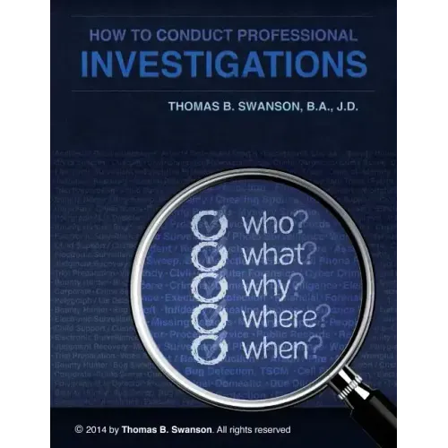 The purpose of this book is to provide the skills and information necessary to conduct effective and ethical investigations. The reader should note the importance of the operative words: "effective" in this context means an investigation that obtains results. The term "ethical" means not only an investigation that is conducted in a lawful manner, but also an investigation that is conducted in a manner that is not offensive to the normal standards of decency. In other words, an investigation that is conducted with a clear sense of professionalism. When an investigation involves unethical behavior, it is ultimately less effective and indicates a lack of skill. Effective and ethical investigations are the product of proper training and developed skills. It is learned behavior, not natural ability. Like most skills, proficiency in respect to the development of investigative skills concerns the issue of "failure". In many other endeavors, failure is a bad thing with bad consequences. In the context of investigations, it is a serious mistake to think in those terms for three reasons. First, the development of investigative experience is built upon learning what works and what doesn't. It is this process that sharpens one's skills, and with time, makes the investigator more effective. Secondly, the exploration may be useful in conducting a future investigation. For the investigator, the exploration process represents a beneficial experience in and of itself. Finally, it is important to think of an investigation as a process that does not end. An investigation may be cut short because of time considerations or cost benefit issues, but those are decisions independent of the process. Investigation almost always produces some beneficial result because there is almost always more known after an investigation than before. In other words, "success" is a matter of degree and the degree of success in investigations often comes down to two critical factors: identification and utilization of resources. This book addresses these two factors in such a way as to develop skills and enhance the degree of success. The notion of identification and utilization of resources may seem simple. In the "real world" it is not. Rather, it involves motivation, training and discipline because even a small increase in the degree of success can make a huge difference to the one seeking to benefit from the investigation. The point is this: while an investigation will almost always yield some benefit, there are situations were even a slight increase in the degree of success will make a real difference. This is the ultimate mission of an investigation - to reach a degree of success that makes a real difference. -- Types of Investigations -- There are a number of ways to classify investigations and some of those are as follows: - Accident / Reconstruction - Arson / Fire - Asset Search - Background Checks - Bounty Hunter - Bug Sweep, Bug Detection, TSCM - Cell Phone Records - Child Support / Custody - Civil - Computer Forensics / Cyber Crime - Corporate - Crime Scene - Criminal - Domestic - Due Diligence - Electronic Data Discovery - Electronic Surveillance - Executive Protection - Financial - Forensic - Fraud - General - Identity Theft - Infidelity / Cheating Spouse - Insurance Fraud - Judgment Recovery - Missing Persons - Mystery Shopper - People Locate / Skip Trace - Polygraph / Lie Detector - Process Service - Public Records - Repossessions - Surveillance - Trial Preparation - Video Surveillance / Photo Surveillance - Workers Compensation - Wrongful Death This book is a no nonsense tool for people who want or need to learn how to conduct investigations. It contains structured methodology for obtaining information by personal interviews and other means. Further, the book discusses and details a variety of resources and techniques that can be used to engage in lawful gathering of information.
